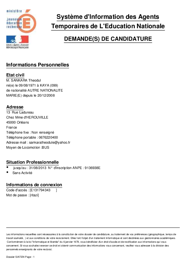 Pdf Systeme D Information Des Agents Temporaires De L Education Nationale Demande S De Candidature Informations Personnelles Etat Civil Theo Sank Academia Edu