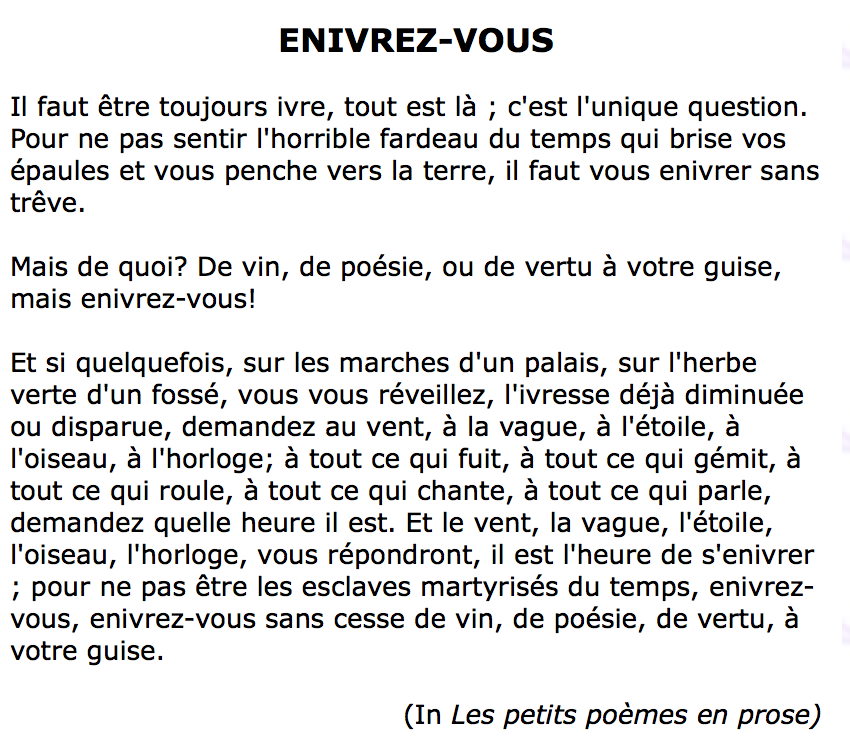 Baudelaire - Enivrez-vous Il faut être toujours ivre. Il faut être toujours ivre. Il faut être toujours ivre.