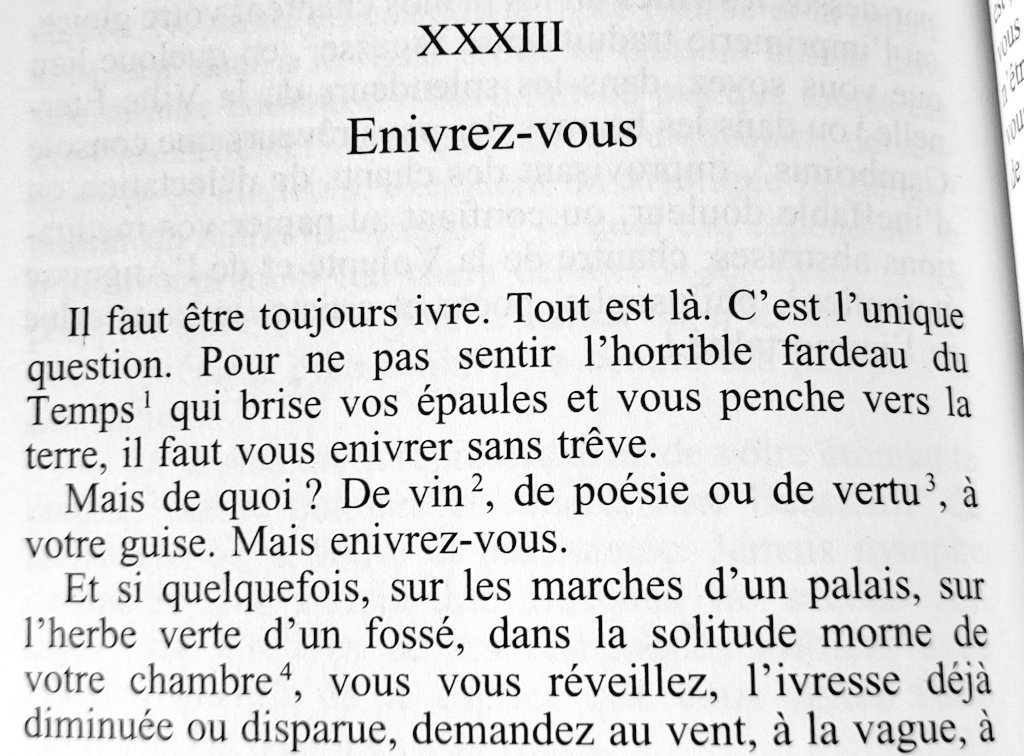 Il faut être toujours ivre tout est là. De vin de poésie ou de vertu à votre guise. De vin de poésie ou de vertu à votre guise.