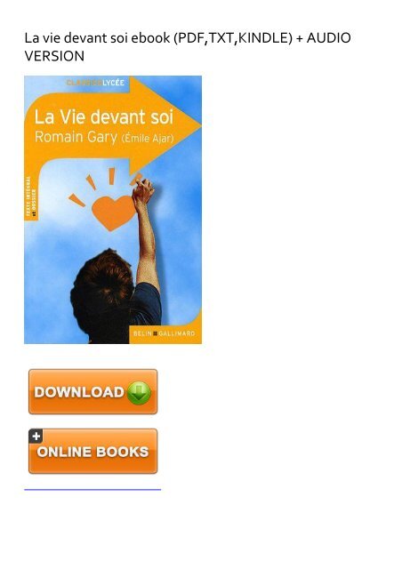 Scaricare La vie devant soi PDF Gratis È facile e immediato il download di libri in formato pdf e epub. Engagé dans laviation en 1938 il est instructeur de tir à École de lair de Salon. La vie devant soi The Life Before Us Romain Gary The Life Before Us is a novel by French author Romain Gary who wrote it under the pseudonym of Emile Ajar.