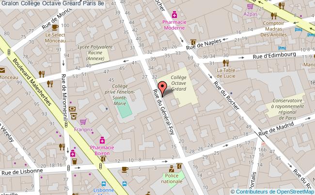 Ateliers de co-conception avec la direction du collège et les services. Mot du Principal Qui est Octave Gréard. Le collège Octave Gréard se situe au 28 rue du Général Foy dans le 8ème arrondissement.