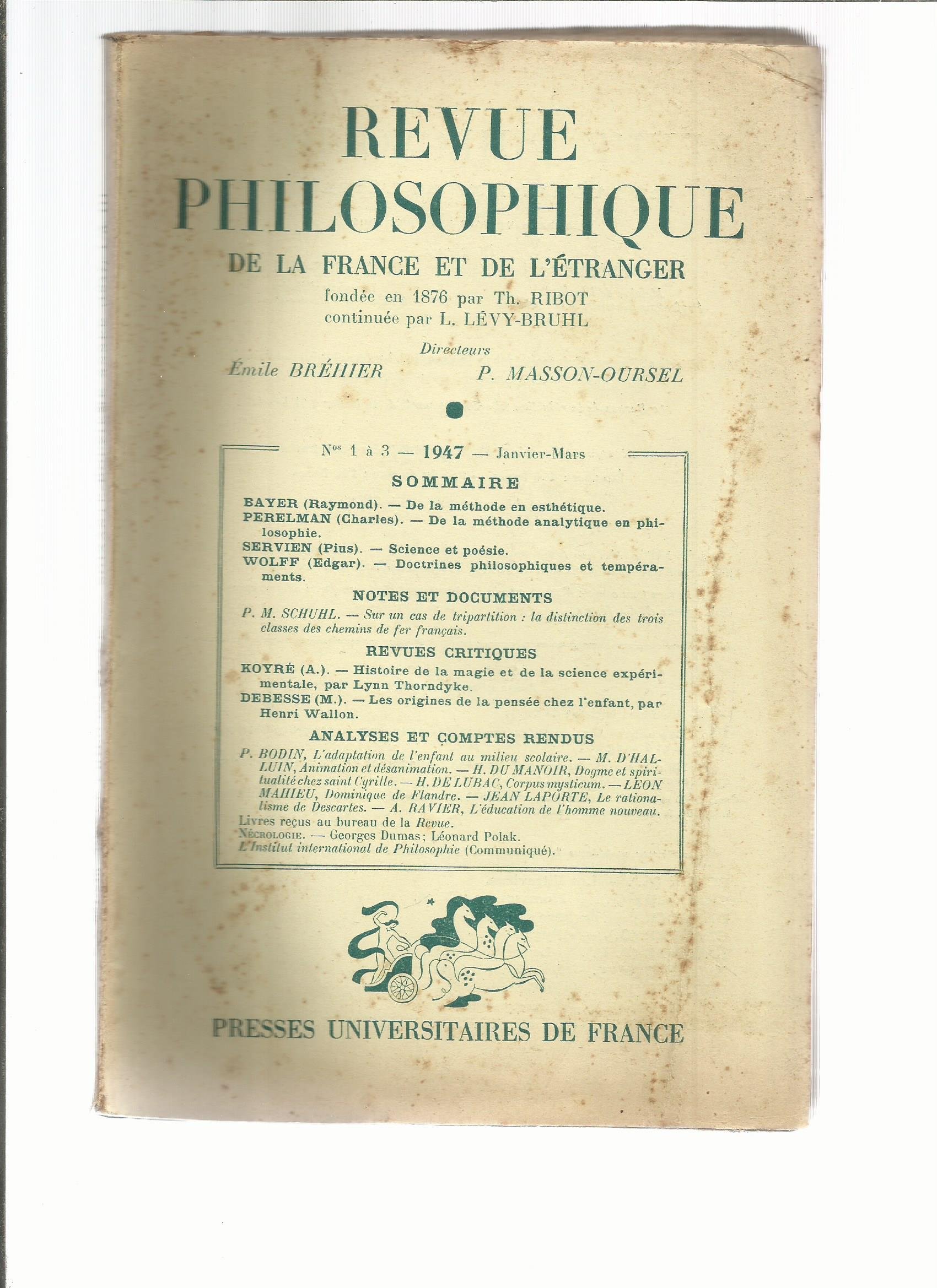 Revue philosophique de la France et de l étranger Fondée en 1876 la Revue philosophique publie quatre fascicules par an. Revue Philosophique de la France et de lÉtranger. Revue philosophique de la France et de létranger.