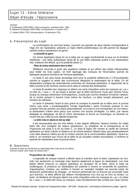 Sujet 12 Serie Litteraire Objet D Etude L Epistolaire Bac De Francais