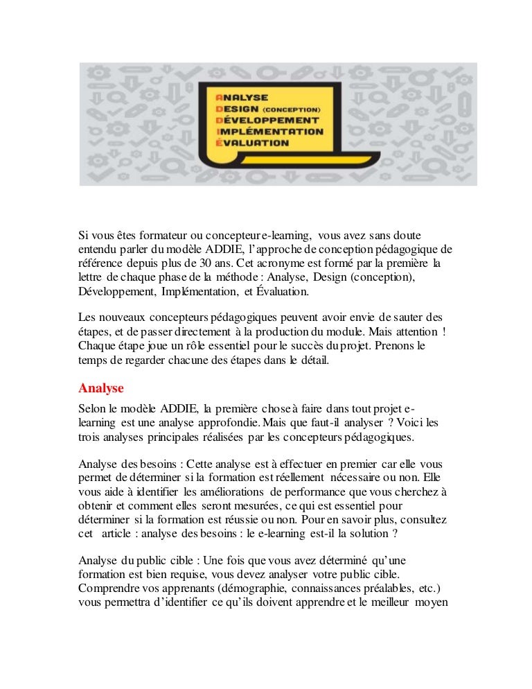 Ingenierie Pedagogique Et Modele Addie Sydologie