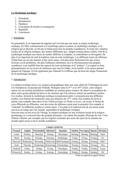 La Mythologie Nordique 1 Preambule 2 Introduction 3 Matu Easy